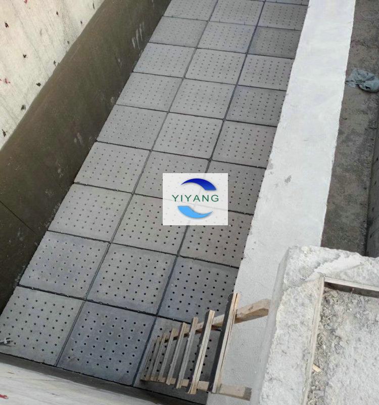 自來水廠過濾池中選擇使用水泥濾板時,需要配套安裝蘑菇型長柄濾頭,水泥濾板在預(yù)制加工的時候長柄濾頭的預(yù)埋件是已經(jīng)澆筑在水泥濾板中的,制成成品后,在濾池底部槽梁建好后,拼接安裝水泥濾板,安裝完畢后要對水泥濾板縫隙進行粘接密封,完工后開始安裝長柄濾頭、濾水帽。詳情如下圖所示: