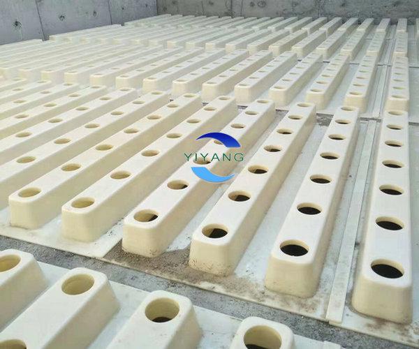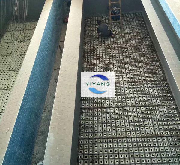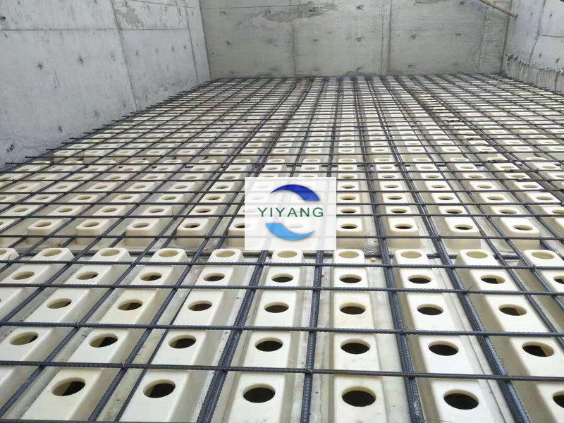 在濾池的槽梁濾梁建好之后,開(kāi)始安裝ABS濾板,之后使用鋼筋在ABS濾板上方編成鋼筋網(wǎng),濾頭的桿體部分要按在ABS濾板上,擰上濾頭上配備的施工蓋,準(zhǔn)備工作完結(jié)之后,開(kāi)始統(tǒng)一澆筑水泥,整體澆筑完之后,待水泥混凝土濾板完全凝固,去掉施工蓋,安裝ABS濾帽部分,完成濾板濾頭施工。