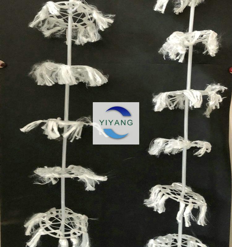 組合式填料產品的**主要是將塑料圓片壓扣改成雙圈大塑料環(huán),將醛化纖維或滌綸絲壓在塑料環(huán)的環(huán)圈上,使纖維束均勻分布,內圈是雪花狀塑料枝條,每束絲串通4個方型孔,這樣醛化絲在塑料環(huán)上的健壯度顯而易見,既能掛膜,又能有效切開氣泡,進行氧的轉移速率和利用率的提高,產品具有散熱功效高,阻力小,布水、布氣功用好、比表面積大、氧利用率高、孔隙可變、不阻塞,易長膜,可調理絲條粗細的拼裝方法,完全適用于各種廢水的厭氧、兼氧、好氧等處置技術。