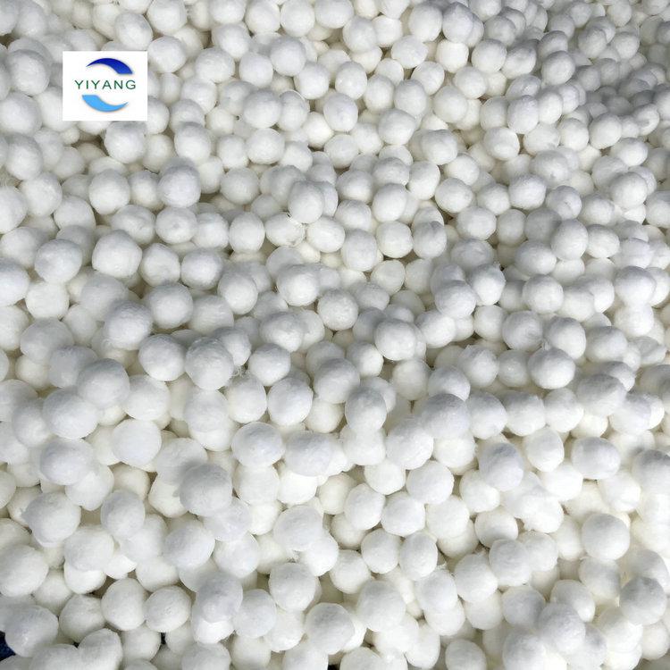 纖維球產(chǎn)品外觀為白色圓球毛茸狀,產(chǎn)品材質(zhì)有滌綸絲和腈綸絲兩種,通過半機(jī)械化加工制得,產(chǎn)品型號(hào)有直徑35-40mm、40mm、50mm三種較為常用。纖維球是一種精細(xì)過濾濾料,用于水處理纖維過濾器中,產(chǎn)品具有比表面積大、孔隙結(jié)構(gòu)發(fā)達(dá)、處理污水截污量高、過濾精細(xì)度高的特點(diǎn)。