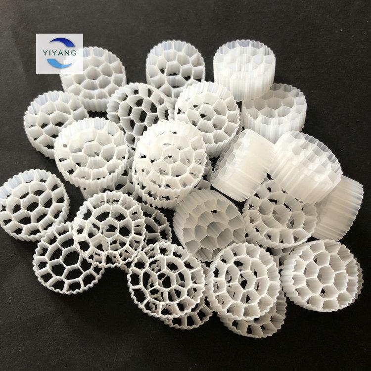 MBBR填料(流化床填料)是一種新型生物活性載體,它采用科學配方,根據(jù)不同水質(zhì)需求,在高分子材料中融合不同種類有利于微生物快速成附著生長的微量元素,經(jīng)過特殊工藝改性、構(gòu)造而成,具有比表面積大、親水性好、流動性好、生物活性高、易掛膜、處理效果好、使用壽命長等優(yōu)點。
